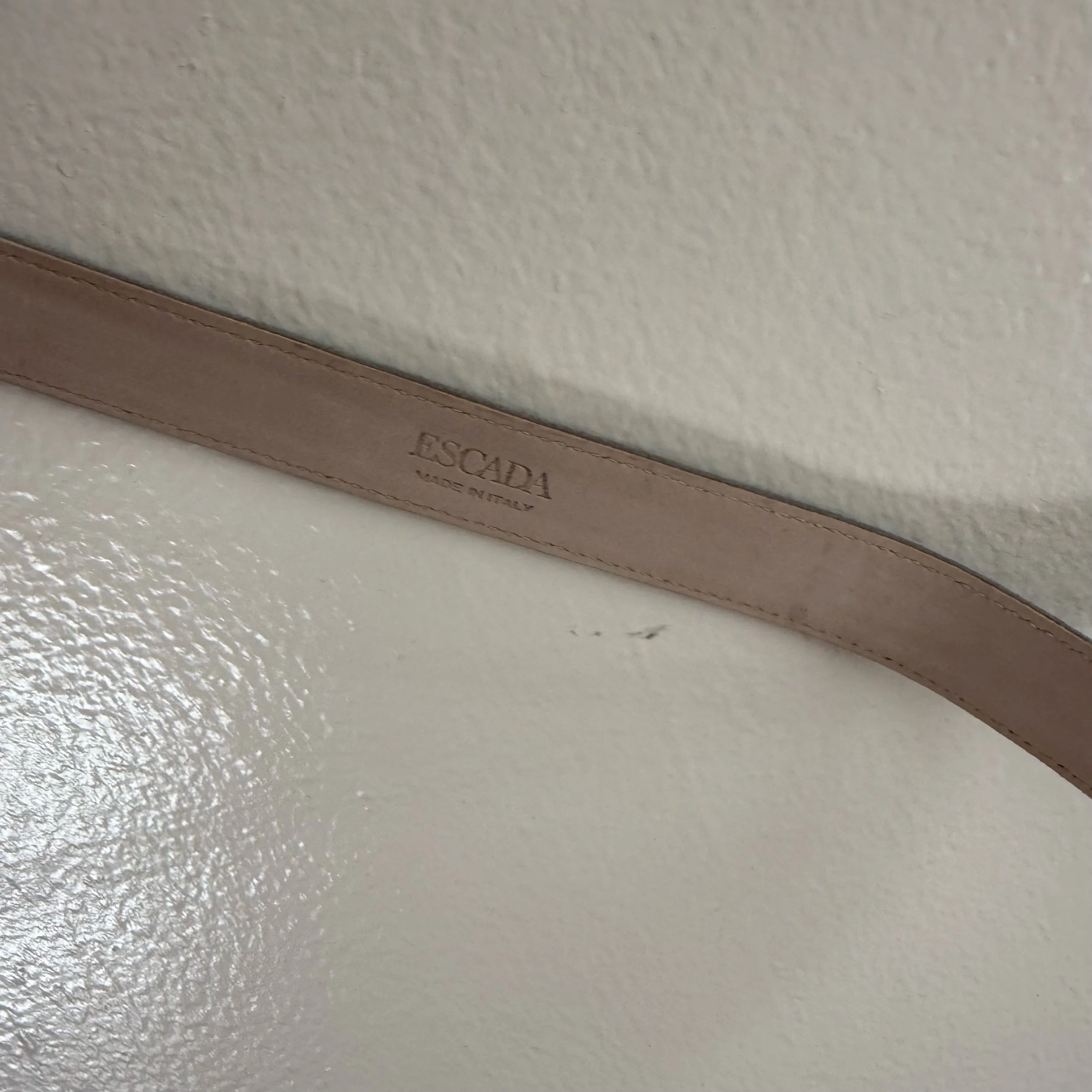 Shop › Escada Belt Image 1 of 3 Image 2 of 3 Image 3 of 3 Escada Belt $40.00 Vintage Escada blue suede belt with gold hardware. •size small (30.5-32.5) Add To Cart Added! Vintage Escada blue suede belt with gold hardware. •size small (30.5-32.5)