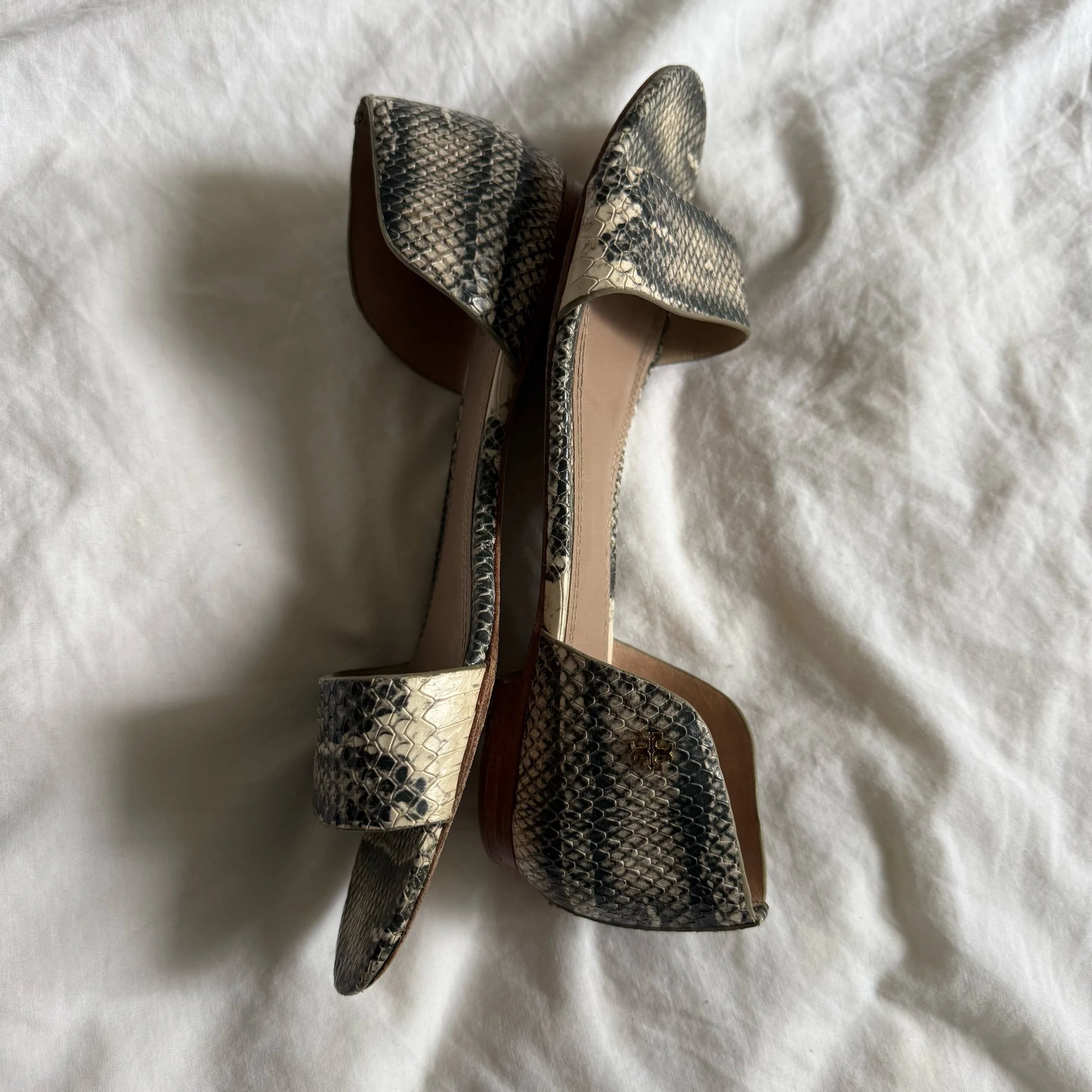 Shop › Tory Burch Sandals Image 1 of 5 Image 2 of 5 Image 3 of 5 Image 4 of 5 Image 5 of 5 Tory Burch Sandals $32.00 Tory Burch genuine leather snake embossed sandals.•size 8 Add To Cart Added! Tory Burch genuine leather snake embossed sandals.•size 8
