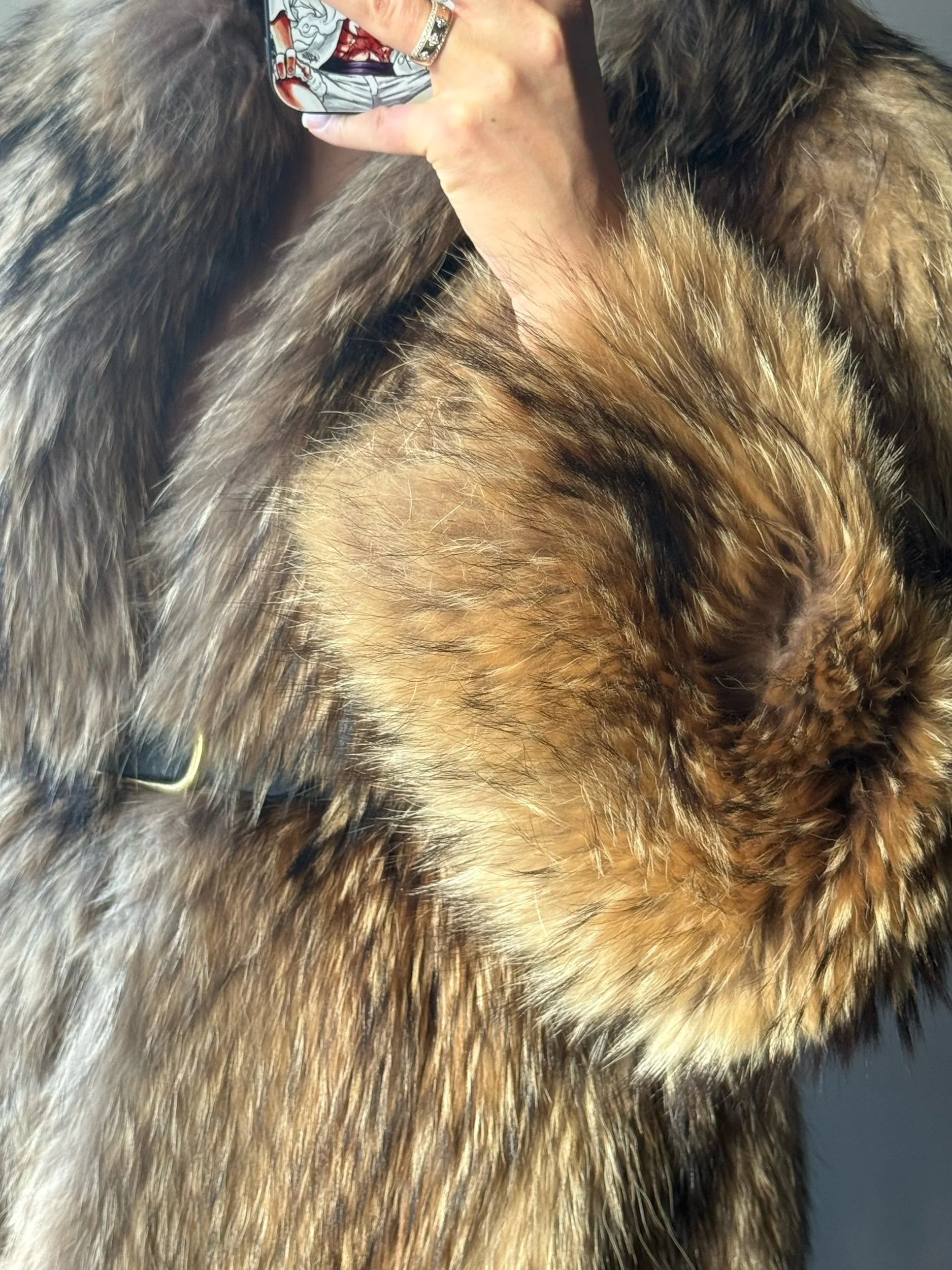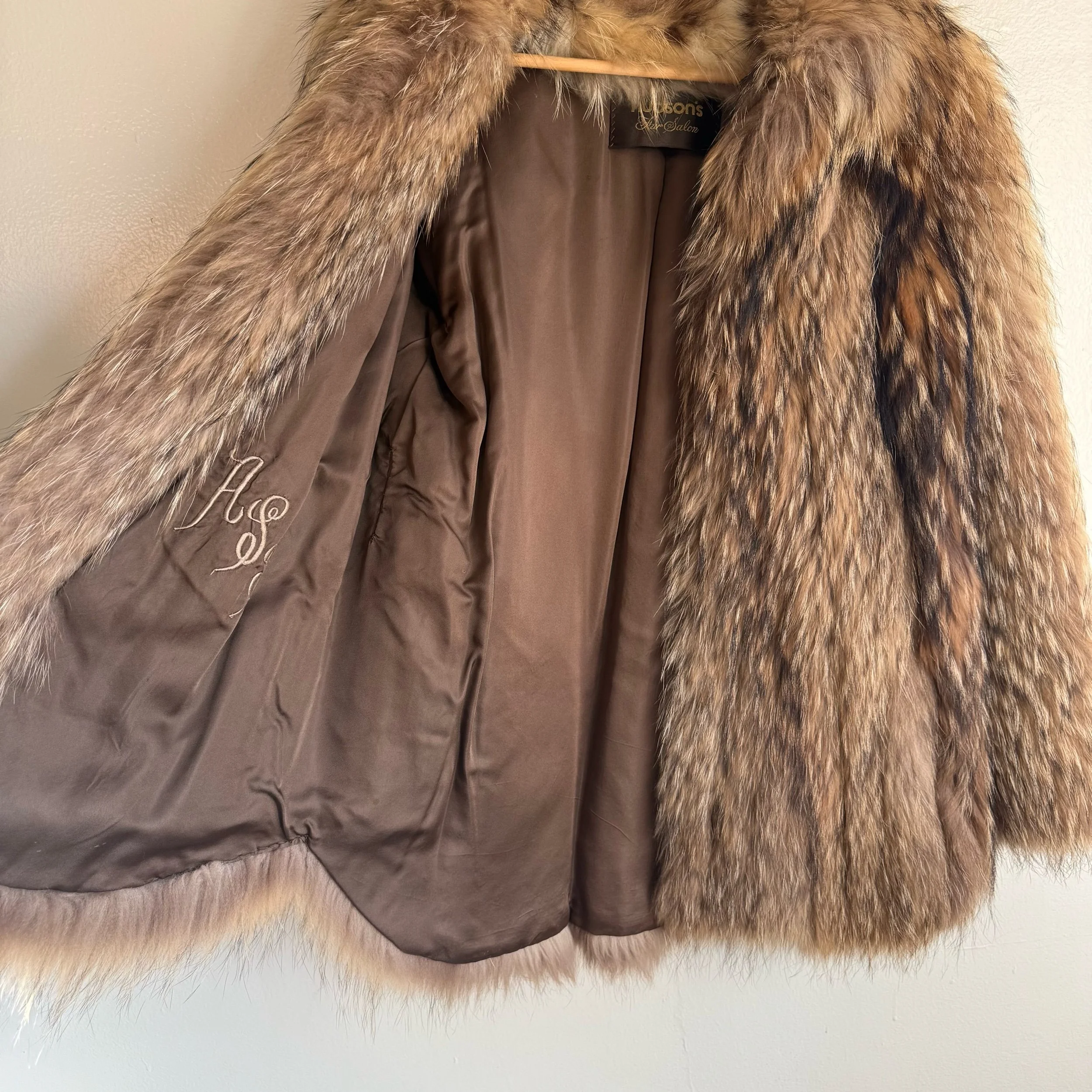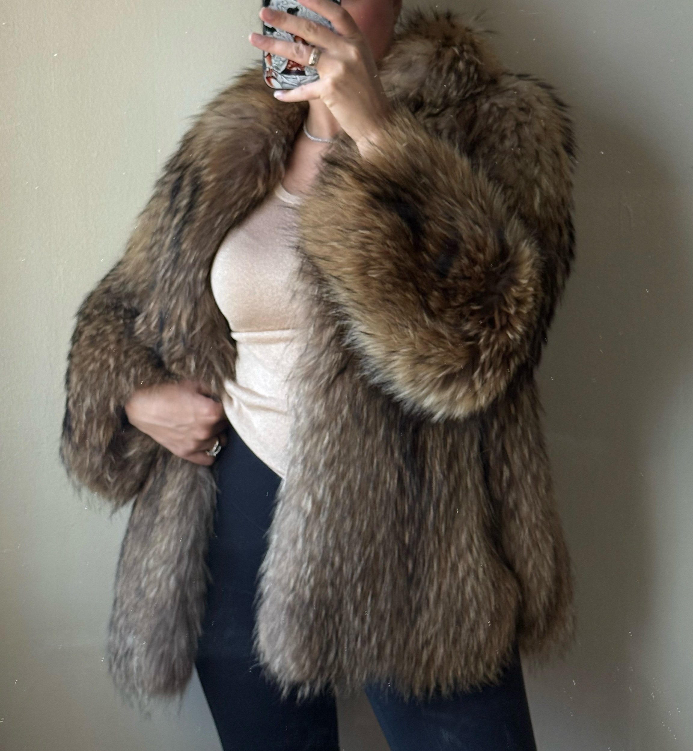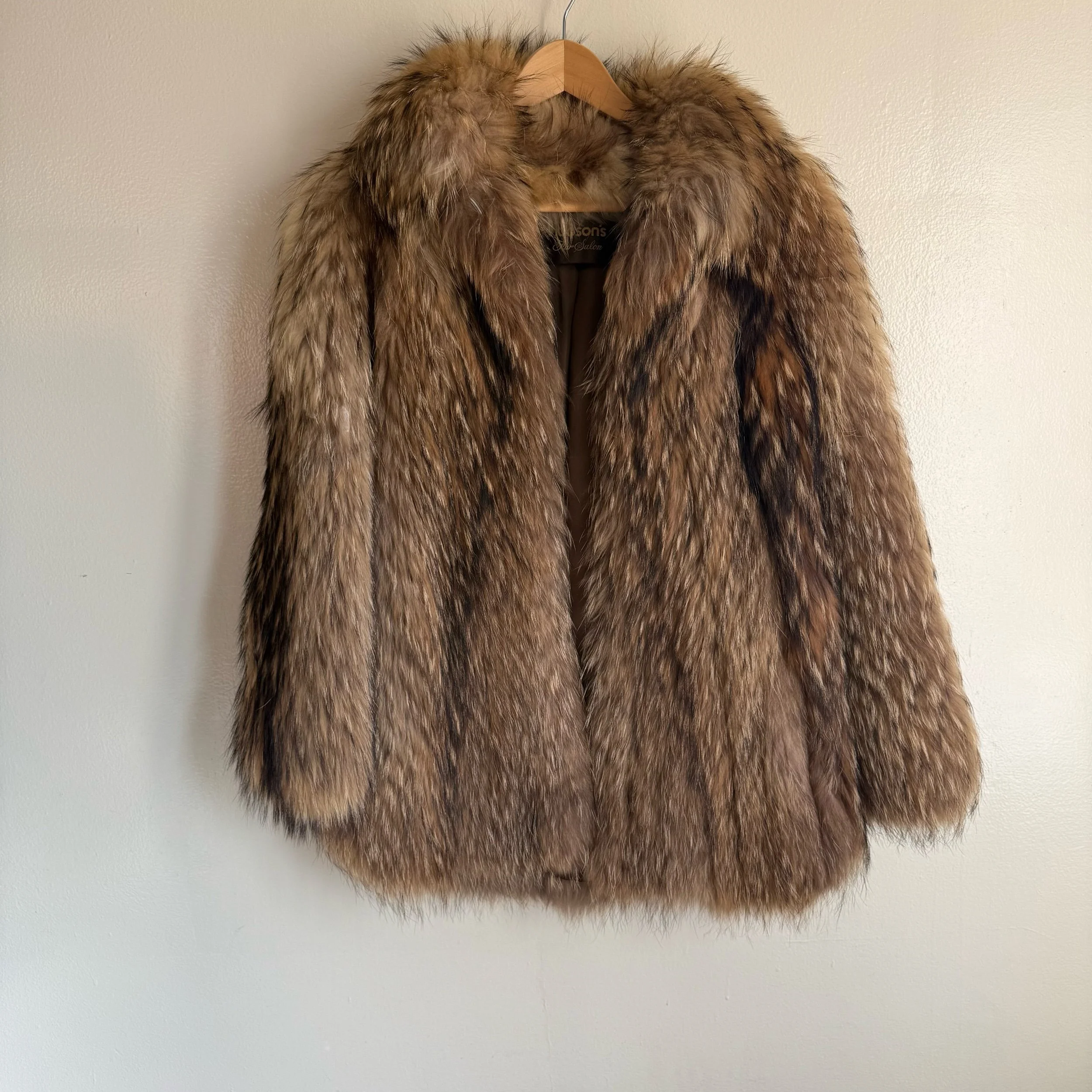 Vintage Racoon fur coat purchased at the downtown Detroit Hudson’s store. This racoon coat is a warm thick dense fur that will keep you warm this winter.