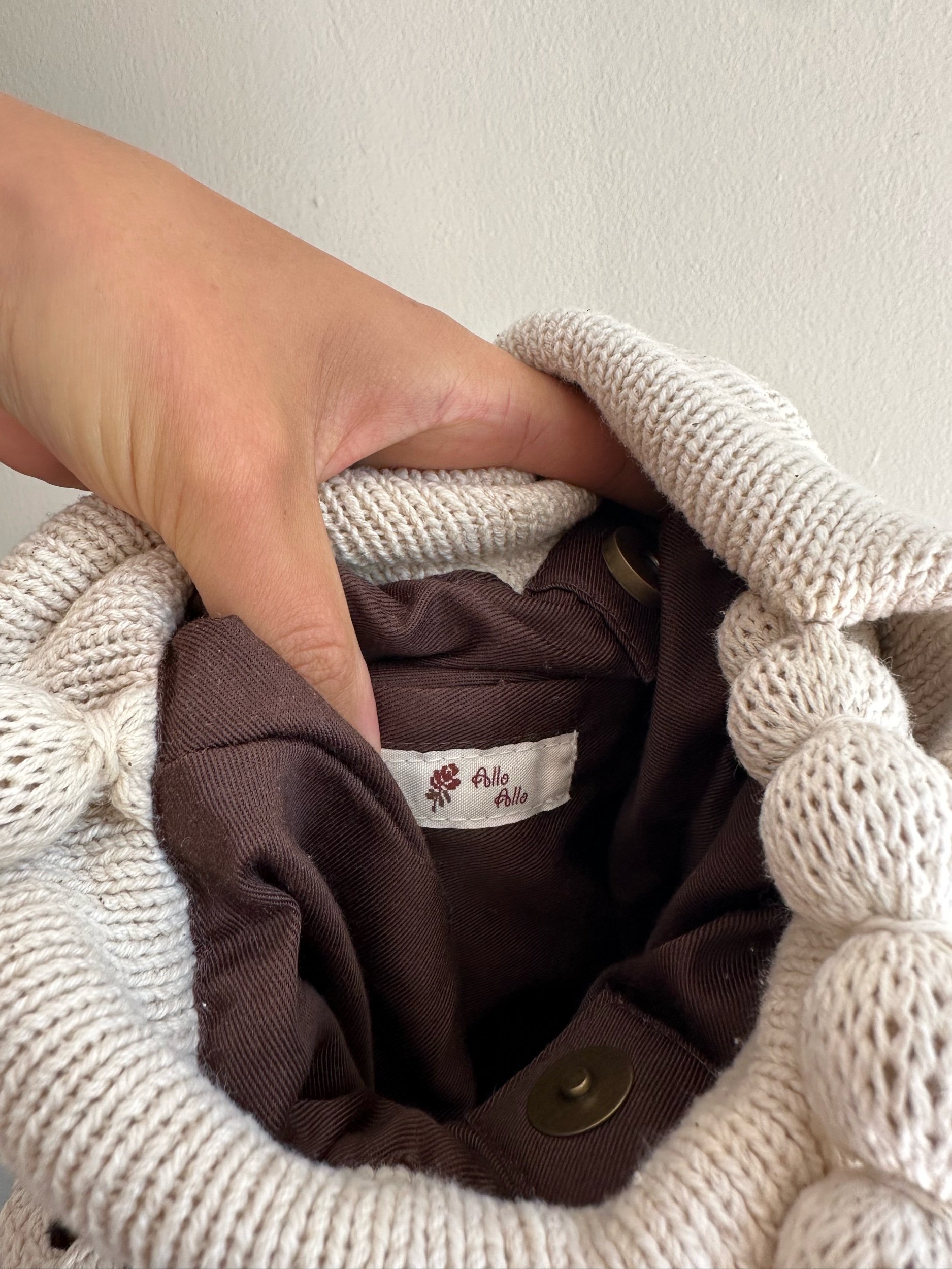 Shop › Crochet Bag Image 1 of 4 Image 2 of 4 Image 3 of 4 Image 4 of 4 Crochet Bag Sale Price: $25.00 Original Price: $35.00 Allo Allo cream crochet bag. Add To Cart Added! Allo Allo cream crochet bag.