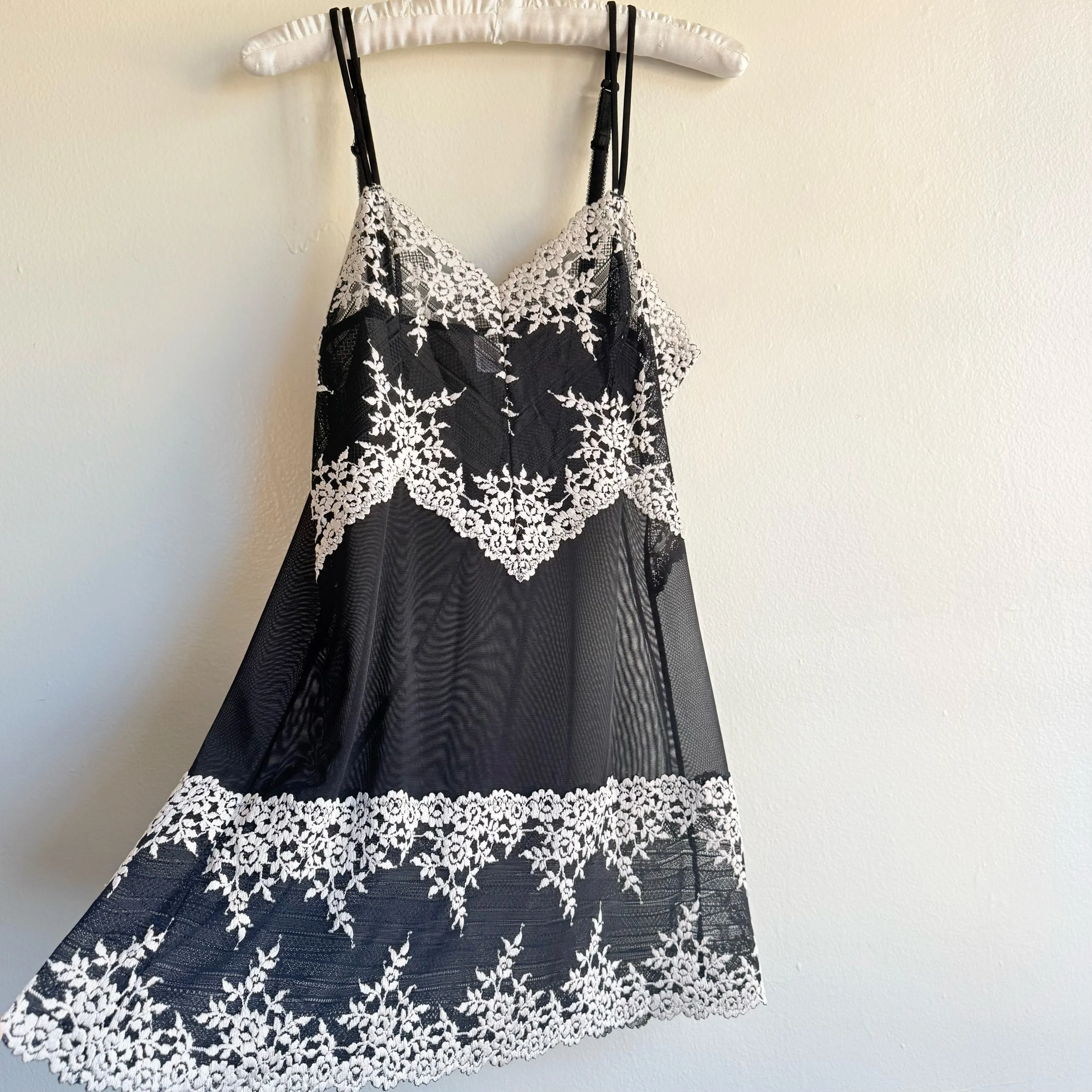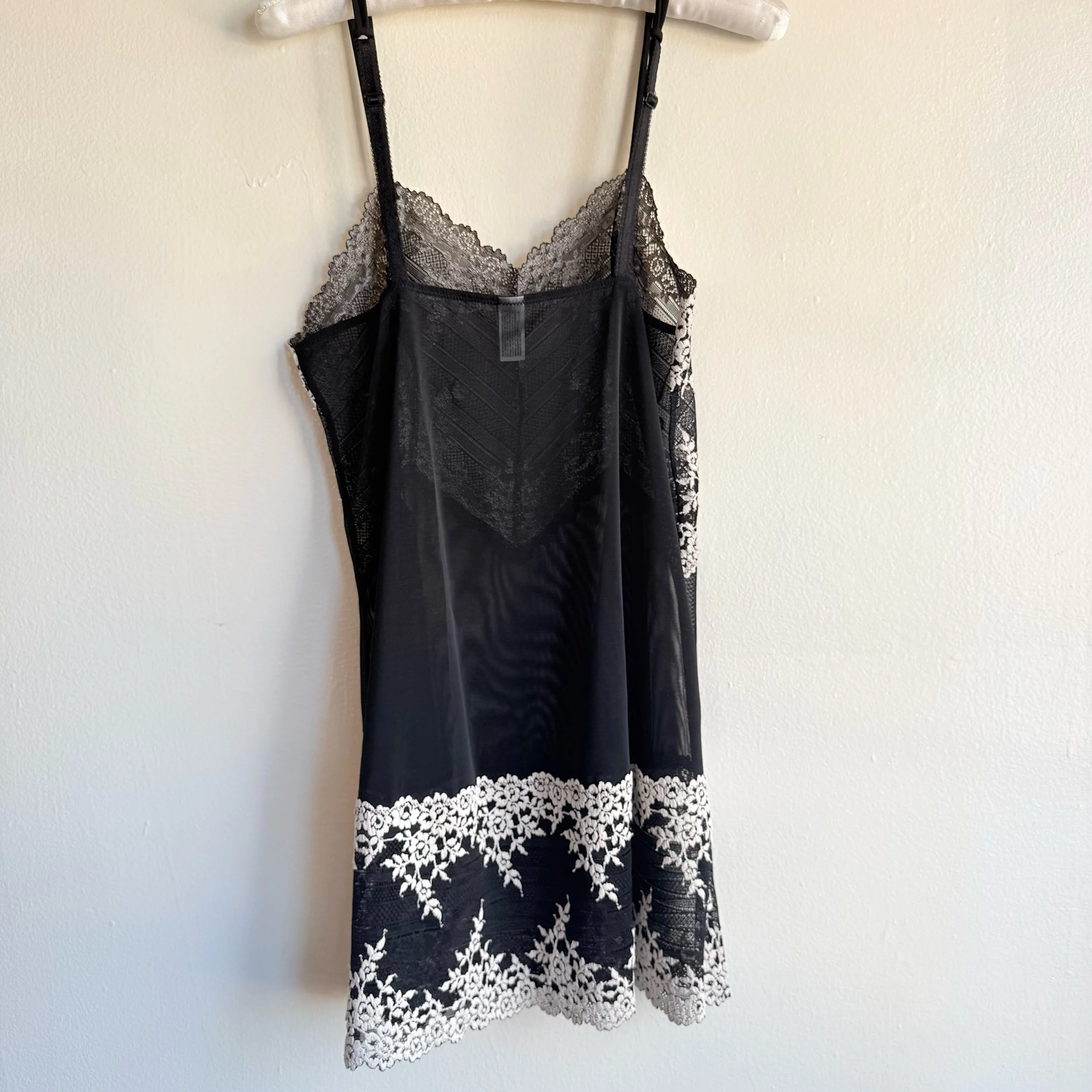 Shop › Slip Dress Image 1 of 3 Image 2 of 3 Image 3 of 3 Slip Dress $20.00 Wacoal black sheer slip dress with cream lace.•size large•has adjustable straps Add To Cart Added! Wacoal black sheer slip dress with cream lace.•size large•has adjustable straps