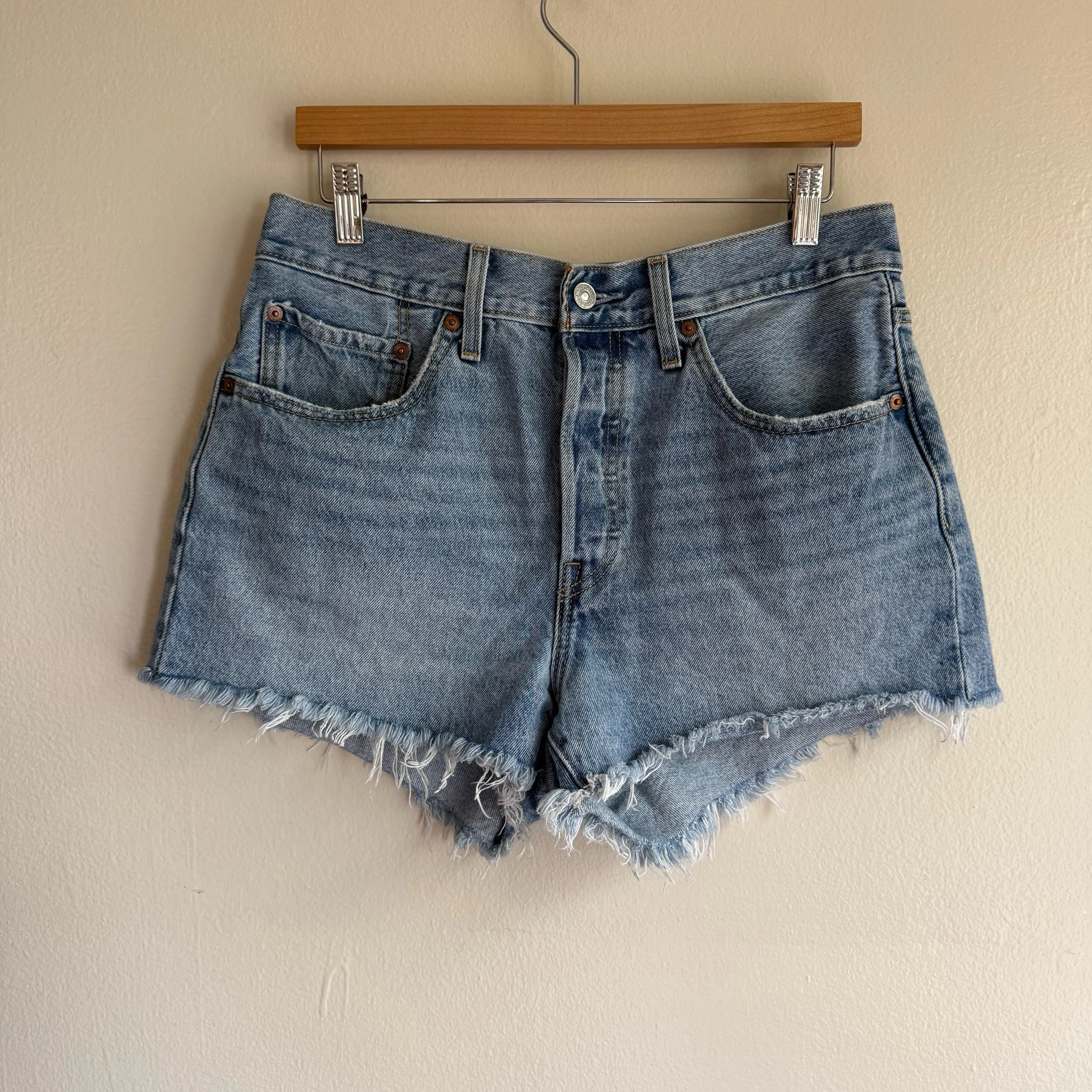 Shop › Levi Shorts Image 1 of 3 Image 2 of 3 Image 3 of 3 Levi Shorts $25.00 Levi denim cutoff shorts with distressed hem.•size 30 (waist about 31 inches)•100% cotton Add To Cart Added! Levi denim cutoff shorts with distressed hem.•size 30 (waist about 31 inches)•100% cotton